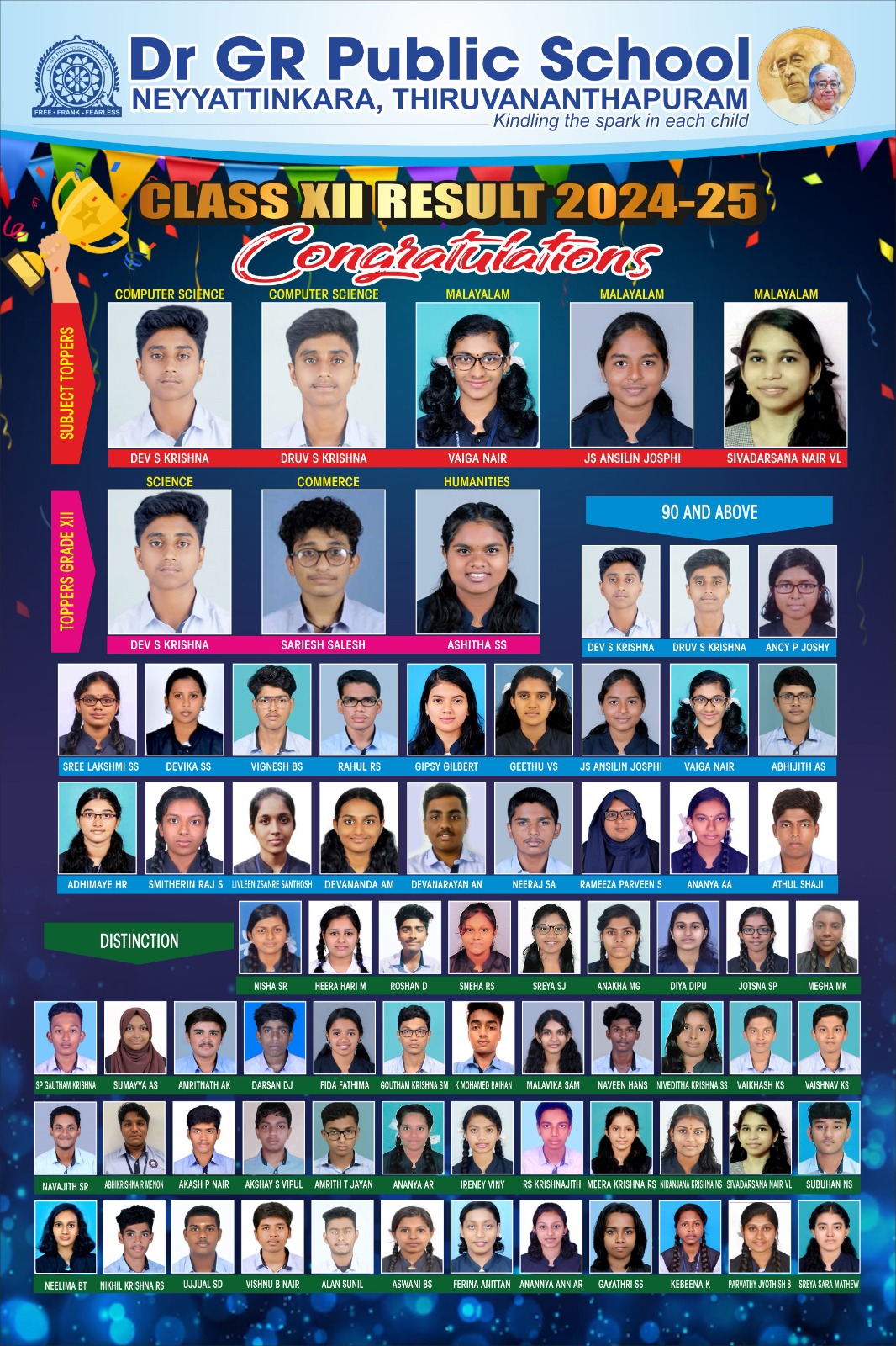 An institution in pursuit of excellence and committed to accomplish the vision of predecessors who set the tone and tempo for performance, DR GR Public School stands tall with a legacy of more than 30 educational years. GRPS is a recognized Co-educational Sr. Sec. School that has been affiliated to CBSE up to XII with Science, Commerce and Humanities streams. An institution meticulously planned by Desikottama Dr G Ramchandran and led forward by leading luminaries in the field of Education like Sister Mythili, Adv. R S Harikumar, Shri Rishi Raj Singh IPS, single-mindedly focuses on three basic values – Being Free, Frank and Fearless. Hence every initiative and effort are directed towards building these values allowing the young minds to continually and effortlessly imbibe these for becoming Global Citizens.